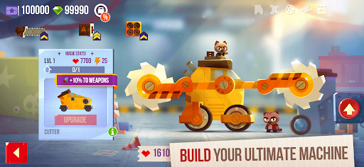 Voir plus Préparez-vous pour une confrontation chaotique et pleine d'adrénaline dans CATS: Crash Arena Turbo Stars ! Fabriquez votre machine de combat ultime, assemblez des armes puissantes et dominez l'arène de combat. Incarnez un ingénieur qualifié et déclenchez la destruction dans des combats 1v1 pleins d'action.