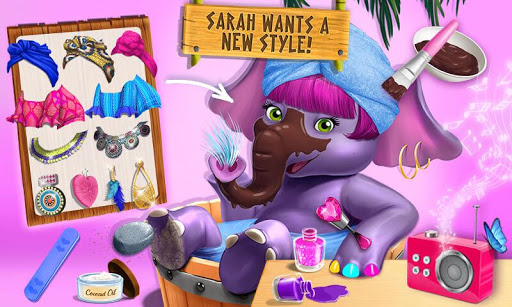 · Prends soin de la peau de l'éléphant Sarah, fais les ongles, coiffe les cheveux et choisis les vêtements les plus mignons !