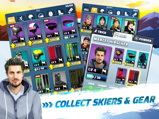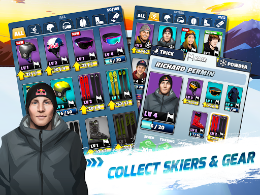 Gagnez des courses pour gagner des récompenses, puis encaissez vos récompenses pour récupérer l'équipement de neige le plus malade (ou premium) pour vos skieurs. Un meilleur équipement signifie de meilleures statistiques et compétences, et meilleures sont vos chances de finir sur le podium pour gagner des récompenses encore plus impressionnantes!