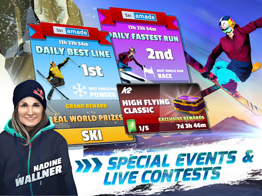 Participez à des concours de poudreuse, de course et de tromperie et participez à des épreuves de ski spéciales et limitées dans le temps. Grimpez les classements avec des compétitions solo et PvP.