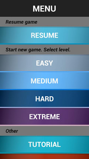 Jeu relaxant classique Sudoku. L'application a une interface minimaliste intuitive. Sudoku 9x9 est un jeu de nombres basé sur le placement logique des nombres. Vous pouvez choisir le niveau de difficulté de Facile à Super Difficile. Choisissez Easy si vous voulez vous détendre et Super Hard si vous voulez vraiment vous mettre au défi et entraîner votre cerveau. C'est aussi un jeu qui tue le temps.